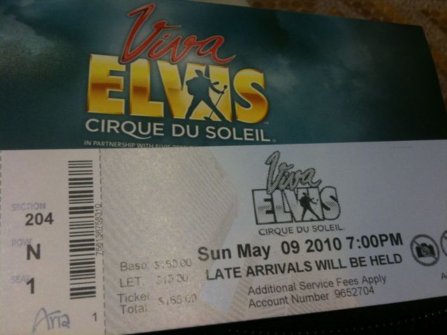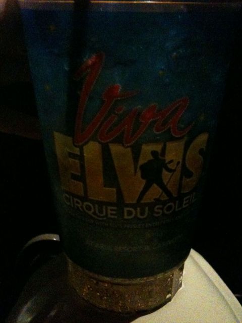 Viva Elvis Cirque du Soleil is playing at Aria casino just up the strip. I got there a few hours early, so I visited the Viva Elvis store and hit the jackpot. They had stuff from Sun Studio that isn’t even in Memphis. I bought a Sun hoodie with Elvis on the back, a Vegas Elvis tee shirt, Viva Elvis keychain, Viva Elvis program, Viva Elvis bag, and a pink Viva Elvis hanger. After shopping, I had an hour and a half before the doors opened, so I gambled – and did not win. I decided to sit and people watch outside the theatre doors. I ended up buying an $11. Ginger ale because I wanted the Viva Elvis cup – it was about 32oz.