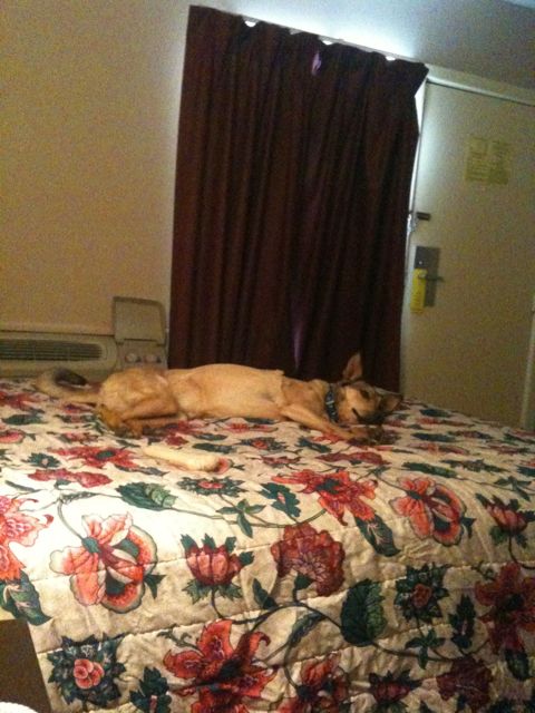Ordered a pizza, the best yet. Now I’ve had pizza in all 3 states I’ve been in. Elvis and Cilla ate and took a walk and are now relaxing. Cilla wanted her own bed, but Elvis likes to stay close to me.