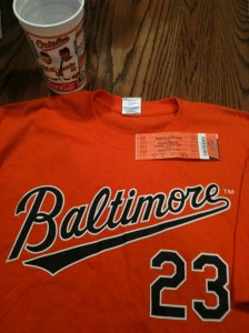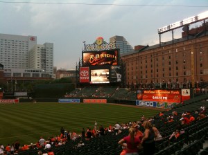 Last night Dad and I went to the Orioles game. I haven’t been in years. I used to go to about 30 games a season, but ever since Cal and Brady retired, baseball just hasn’t been the same for me. But Dad and I went and had fun, even though the Orioles lost to Florida 10 – 4. It was a hot, muggy night, but since it wasn’t crowded we got to move down and sit off first base.