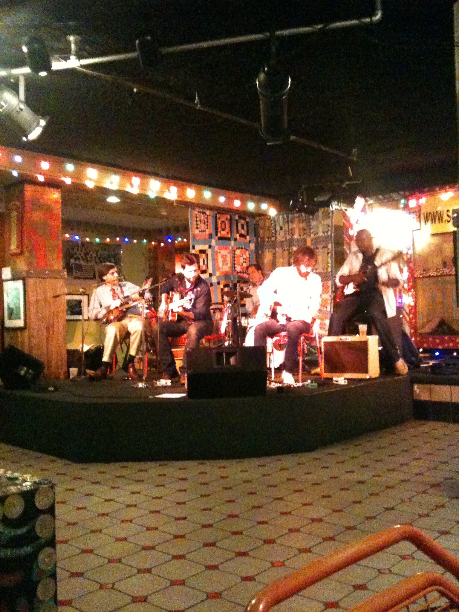 Of course I arrived at the party when it started at 6pm. I got my free glass (or cup) of pinot grigio and was on my way. I walked around a bit before deciding to go into the cafe and sit down. I decided to be social, because that is the point of all of this, and asked to sit at a table with these 3 guys. They were very nice to me and introduced me to a couple of their friends who came over. They turned out to be the Bluff City Backsliders. Thanks guys for being so friendly and making me feel not so alone. The Bluff City Backsliders were great – old school blues. I really enjoyed their set and will definitely see them again.