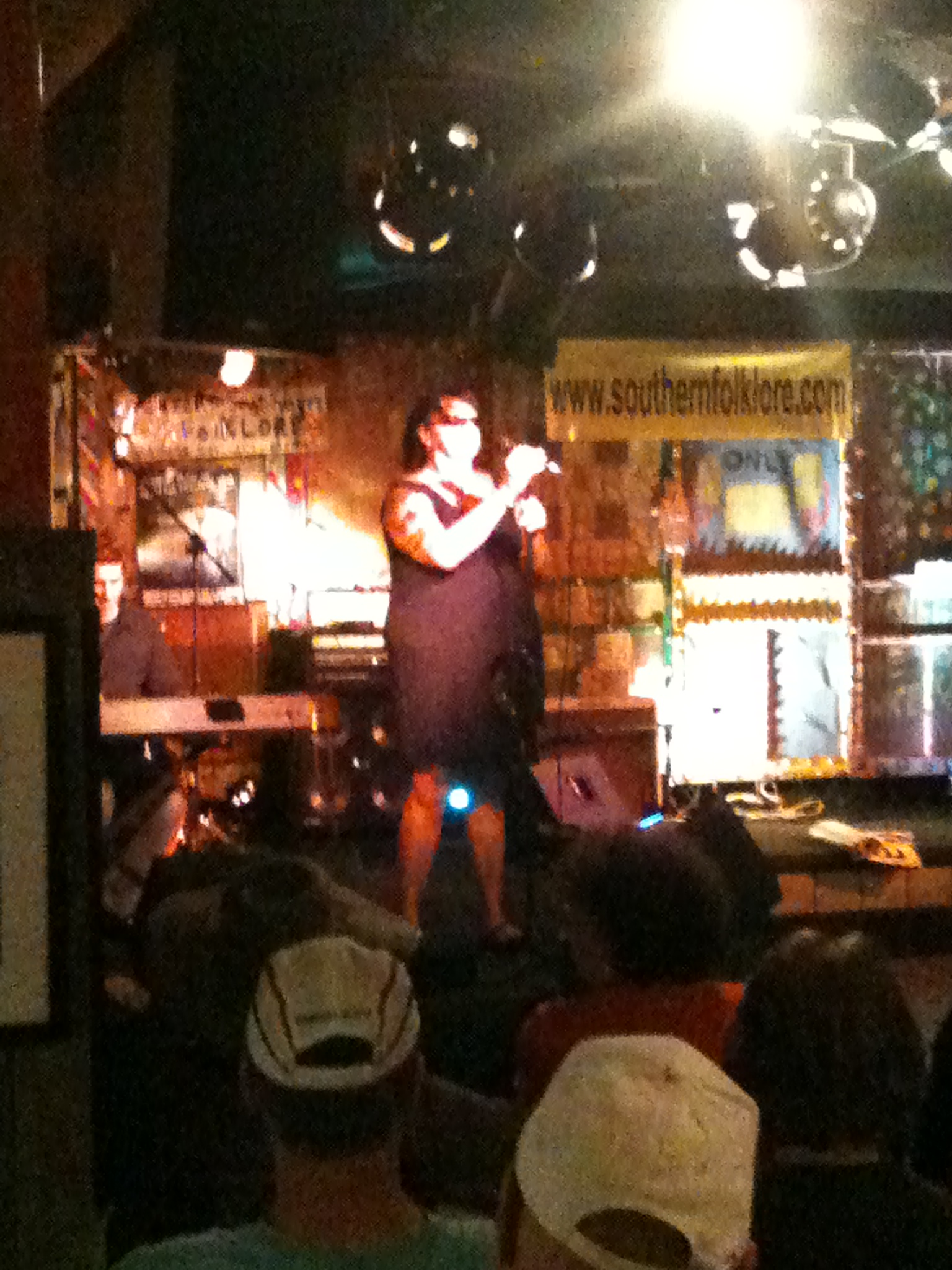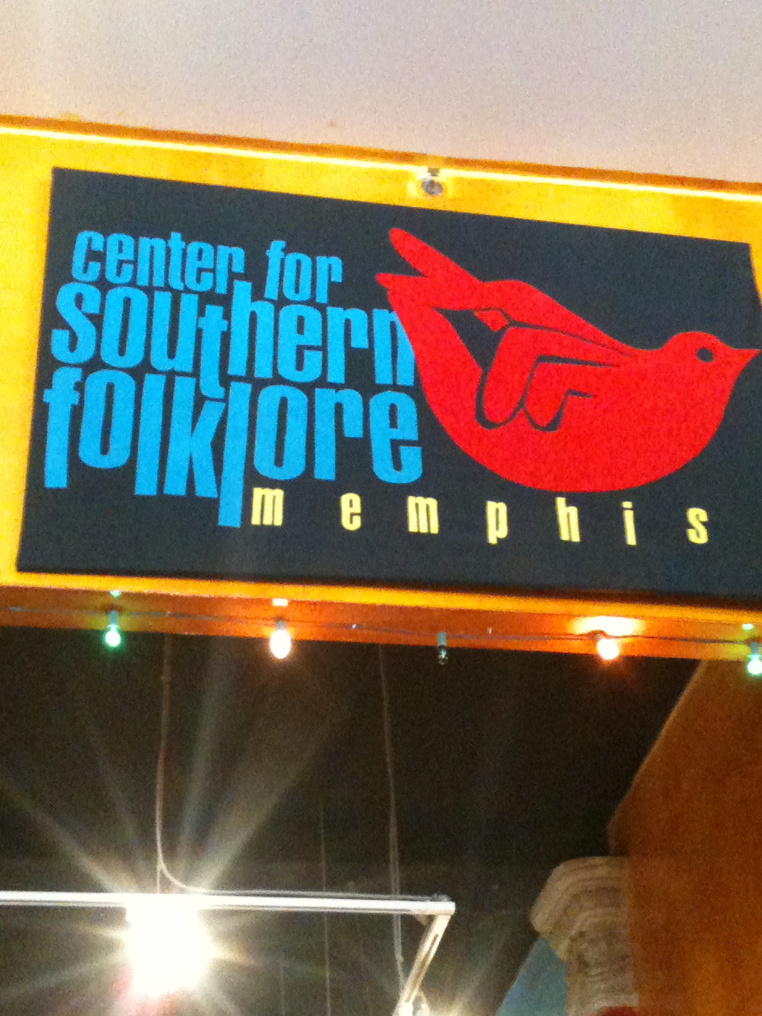 I went to the Center for Southern Folklore Hall next to see Barbara Blue, who is a powerful blues singer. I only stayed for a couple of songs before my stomach got the better of me. I hadn’t eaten since breakfast and smelling the food cooking at the cafe was making my mouth water, so I went to Kooky Canuck’s for lunch. I had fried green tomatoes, a portabella mushroom sandwich, sweet potato fries and sweet tea. Yummy! But I should have stayed at Barbara Blue’s performance longer because apparently Nancy Apple played a song with her.