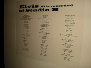 After touring the museum, I bought a few items at the gift shop and then at 10:30am got on the shuttle to RCA Studio B. We went down Music Row on 17th Avenue past all the recording studios. Studio B is the only one you can tour. It was a small studio, but a little bigger than Sun. Unfortunately, we could not go into Studio B because there was a class. We got to look into Studio B through the glass, and I saw Elvis’ piano. We got to go into Studio D and the reception area. RCA Studio B closed on August 17, 1977 – the day after Elvis died. Our tour guide was fantastic! She pointed out the hotel where Elvis stayed while recording in Nashville.
