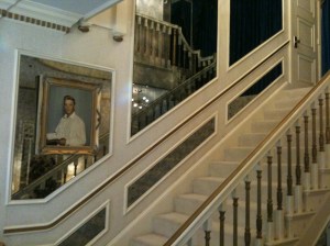 My favorite spot inside Graceland is the living room, and I spent a lot of time there yesterday. Because it was the end of the day, there were no tours directly behind me so I had as much time as I wanted just to soak it all in. There is something about standing in that foyer looking into the living room where Elvis entertained and then looking just past into the music where Elvis was laid out for visitation when he passed. I also spent time at the bottom of the staircase imagining Elvis walking down the stairs to greet everone. I really love the foyer/living room/staircase area of Graceland. I would be happy with just touring that part of the mansion, almost.