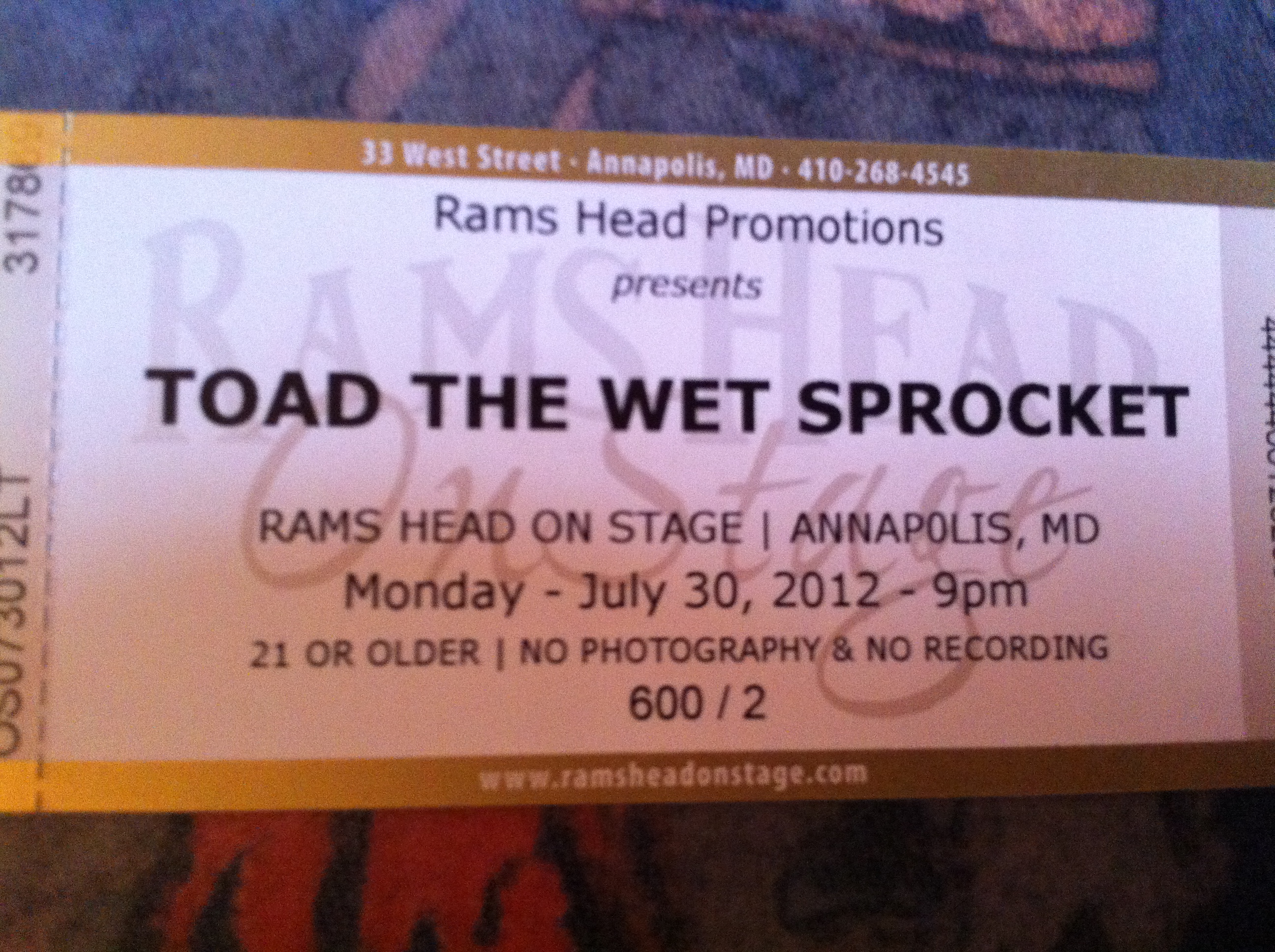 Toad the Wet Sprocket was my second favorite band in the 90s. They actually reminded me a lot of U2. They had that same passion and the guitar reminded me of Edge. I saw Toad several times in concert back then and then once a few years ago. I was a bit disappointed with their show a few years ago because they played all sorts of new songs that I didn’t know, leaving out most of the songs I love from their first three albums. But not last night. Toad the Wet Sprocket played a fantastic show at Rams Head on Stage in Annapolis, MD last night. They did play some new stuff, but they played my old favorites as well.