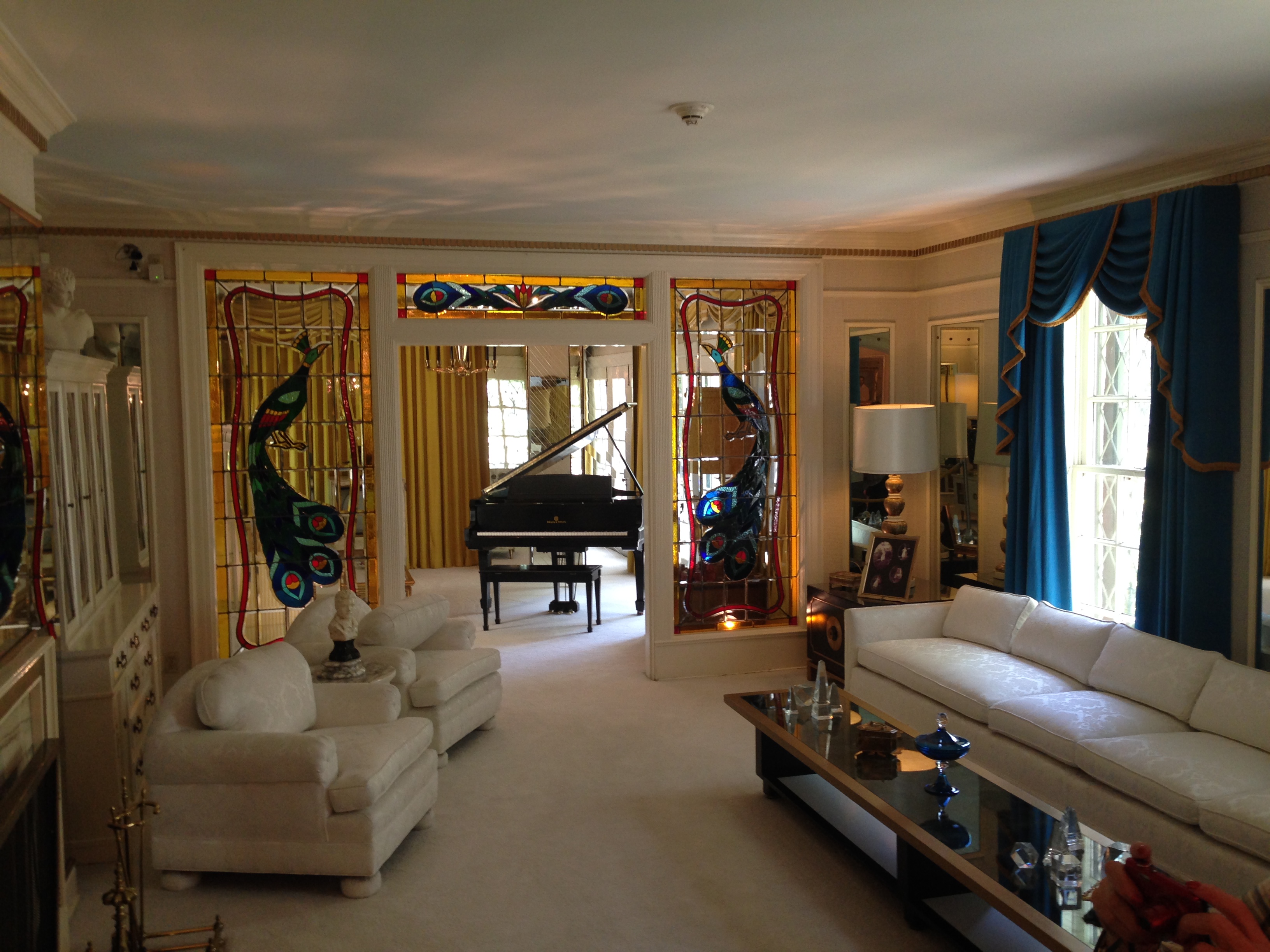 After a great night’s sleep, I went down to the casino to try to win back my money. I didn’t, but won enough to play the slots for an hour. For the last time, I got my free pizza for lunch and took it to my room – along with my free orange cup. I checked out and was at Graceland by 1pm. It felt SO great to be back at Graceland. Just such a great energy, everyone sharing in their love for Elvis. It was a beautiful, warm (not humid) day in Memphis. After my emotional tour of Graceland and the exhibits, I hung out at the Rock n Roll Cafe, lunching on BBQ and sweet tea, until I had to leave for the airport. My flight was a little late. I was home by 10pm, excitedly greeted by my dogs Elvis and Cilla.