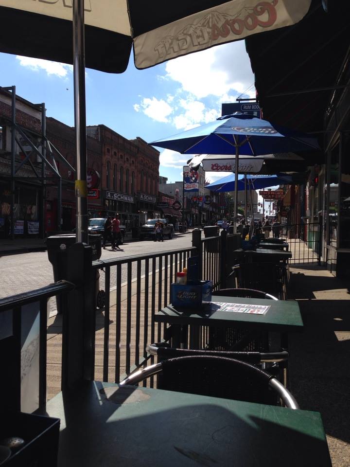 cockiness! After that disappointing loss, I drowned my sorrows with Guinness and a sausage and cheese plate on the deck at Alfred’s, my second favorite spot on Beale Street. The Memphis Sausage and Cheese plate is one of my favorite meals. I usually don’t like sausage, like the brown, gristly breakfast sausage – yuck! But this sausage is more like fried hot dogs kind of sausage. And it’s paired with cheddar, monterey and pepper jack cheese cubes with a honey mustard dipping sauce – yum! I was back at my room at Gold Strike by midnight, but didn’t get to sleep until after 2am.