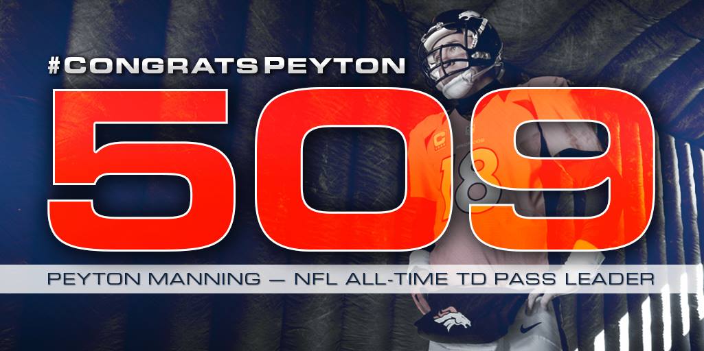 A little Peyton Manning trivia. Did you know Peyton Manning took over the Colts’ QB job in 1998, replacing Jim Harbaugh, the head coach of the SF 49ers? Pretty ironic considering that’s the team he faced last night in the historic record-breaking game. Also when Peyton Manning was drafted in 1998, Colin Kaepernick was only 11 years old. So far Peyton Manning’s career has seen 17 seasons, 269 games, 8,659 passes, 45 different receivers, and 510 touchdowns. It will be a long time before this NFL record will be broken. Manning may even reach 600 touchdowns before it’s all said and down. He has 10 more games this season, and I don’t see him retiring any time soon. Congrats Peyton!