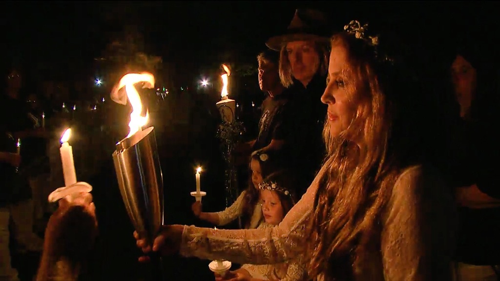 I turned on the live feed of the 37th annual Candlelight Vigil just before Lisa Marie and her twin daughters were walking down the Graceland driveway. I saw Lisa and Priscilla talk to the fans and cried while the fan clubs lit their candles from Lisa’s flame. This is the first time Lisa had lit the flame for the Candlelight Vigil, and the first time her young twin girls had attended. Couldn’t believe I missed it, but thank God (and Elvis) for the live feeds!
