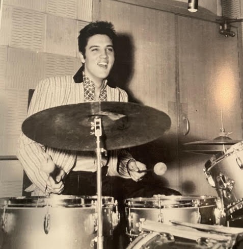 On April 30, 1957 in Radio Recorders in Hollywood, Elvis recorded “Jailhouse Rock,” “Treat Me Nice” and three versions of “Young and Beautiful” for the soundtrack. It was during this session that one of my favorite photos of Elvis was taken – Elvis playing the drums. I love drums and drummers and have an original copy of this photo! Elvis went back into the studio at Radio Recorders on May 3rd to record different versions of “Treat Me Nice,” “I Want to Be Free,” “(You’re So Square) Baby I Don’t Care” and “Don’t Leave Me Now.” On May 7th and 8th, Elvis was on the MGM Sound Stage to record the vocal overdub for the May 3rd recording “(You’re So Square) Baby, I Don’t Care.” Elvis walked out of his Jailhouse Rock session when his back up band was not allowed to warm up with him singing Gospel like he always did.