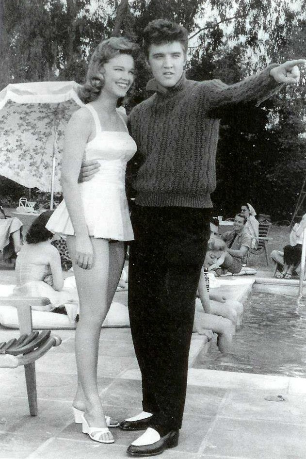 During that famous kissing scene on the couch between Jennifer Holden’s character Sherry and Elvis’ character Vince, she adlibbed that great line, “I’m coming all unglued.” Maybe that is why Elvis carried Jennifer to safety when her dressing room caught fire from an electric heater. Playing the real life hero again, Elvis pulled Judy Tyler to safety stopping a glass door from swinging back and hitting her again (after she had already put her had through it). While on the set of Jailhouse Rock, Elvis judged a beauty contest where the winner earned a walk on part in the movie. Elvis chose Linda Williams as the winner and she was credited as “the girl in the bathing suit.” She was the one at the pool party who tells Vince “when you sing it’s really gonesville” after he performs “(You’re So Square) Baby I Don’t Care.”