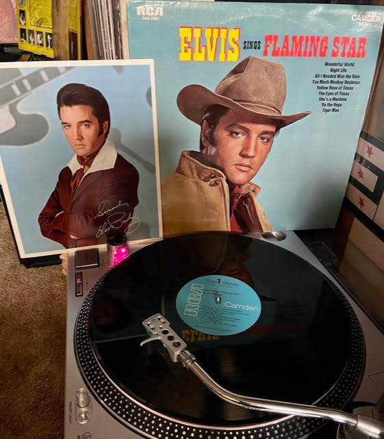 Flaming Star is one of the few movies I don’t have the original vinyl soundtrack. The EP Elvis By Request contained “Flaming Star” and “Summer Kisses, Winter Tears” on side one and “Are You Lonesome Tonight” and “It’s Now or Never” on side two. It sold 1 million copies. The song “Flaming Star” stayed on Billboard‘s Hot 100 chart for seven weeks in 1961, peaking at #14. I do have the re-release Elvis Sings Flaming Star on vinyl from 1969.