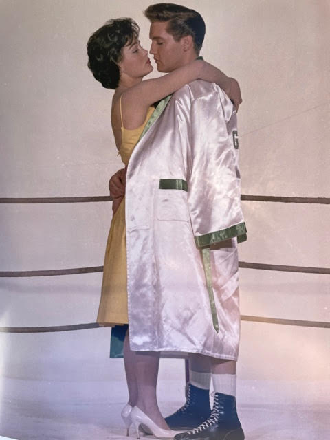 The screenplay for Kid Galahad was written by William Fay. It was based on the novel of the same name by Frances Wallace in 1936. (I have the book but have yet to read it.) A year later, in 1937, the movie Kid Galahad was released starring Bette Davis, Humphrey Bogart, Edward G. Robinson and Wayne Morris who played a bellhop who unintentionally became a boxer who fell in love with his promoter’s sister. When this movie aired on television, it was renamed Battling Bellhop so as not to confuse it with Elvis’ 1962 Kid Galahad. In 1941, Humphrey Bogart remade Kid Galahad with a circus setting and called it The Wagons Roll at Night. It also starred Eddie Albert and Sylvia Sidney. Elvis originally wanted Michael Cortiz to direct as he directed the original Kid Galahad in 1937 (as well as King Creole), but instead Phil Karson was the director. Theirs became a good relationship. Karson was SO excited when Elvis adlibbed the line “about that $5?” The scene was supposed to end after Elvis said, “Do I still get my $5?,” but they kept rolling and then Elvis added the “about that $5,” which cracked me up. Kid Galahad was the fourth and final Elvis movie produced by Davie Weisbart. He had previously produced Love Me Tender, Flaming Star and Follow That Dream.