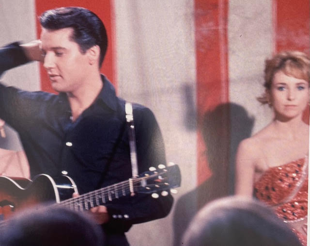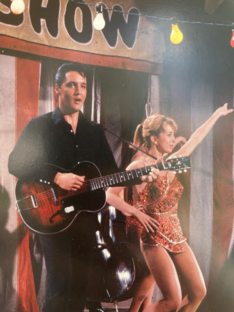 The teenagers sitting at the table besides Glenn Wilder were Racquel Welch (dark hair) in her movie debut, Linda Foster (short blonde hair) up front next to Glenn, Teri Hope (long blonde hair), Norman Grabowski (blue sweater) was also in Girl Happy, Toby Reed (dark jacket and tie) and Lynn Borden (the blonde sitting behind Racquel Welch). Racquel Welch got to say the line “Uh, how come they call this place a tea house, dear?” because the other girl couldn’t get it right. She had an issue with her makeup though. She did not like the way production did her makeup, so she did her own and they did not like that. Linda Foster grew up an Elvis fan, and her father became an Elvis fan when he was introduced to him saying “I have never met a nicer person in my life.” Lynn Borden said she and Elvis would sit in his dressing room and have long talks. Marianna Hill plays Viola and played Lani in Elvis’ Paradise Hawaiian Style. Joan Staley plays Marge the waitress at Mother’s Tea House and played Jonesy in Elvis’ Kissin Cousins. Wilda Taylor plays Little Egypt and also had roles in Elvis’ Harum Scarum and Frankie and Johnny. Diane Libby had a brief scene on the midway about meeting a handsome man in her future to which she responds “I already know all about it brother.” She said working with Elvis made her an Elvis fan. She said Elvis was a lot more talented that she had thought. He was a hard worker and paid attention. After working with him, she saw Elvis perform several times in Vegas. Suzanne Covington was in the audience in the small tent scene. She had small parts in many Elvis films per his request. She was in Kissin’ Cousins, Viva Las Vegas, Tickle Me, Harum Scarum, Girl Happy, Frankie and Johnny and Live a Little Love a Little. Linda Rand plays a college girl and was also in Elvis’ Fun in Acapulco and Girls! Girls! Girls!.